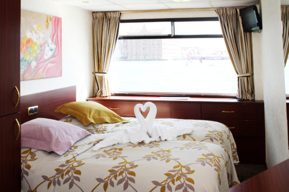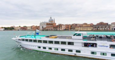 Transfert en car à Venise. Dîner libre à Carisio. Embarquement en fin de journée. Installation dans les cabines. Cocktail de bienvenue et présentation de l’équipage. Souper à bord, soirée libre à Venise. Sur le bateau, animation musicale par Rocco.